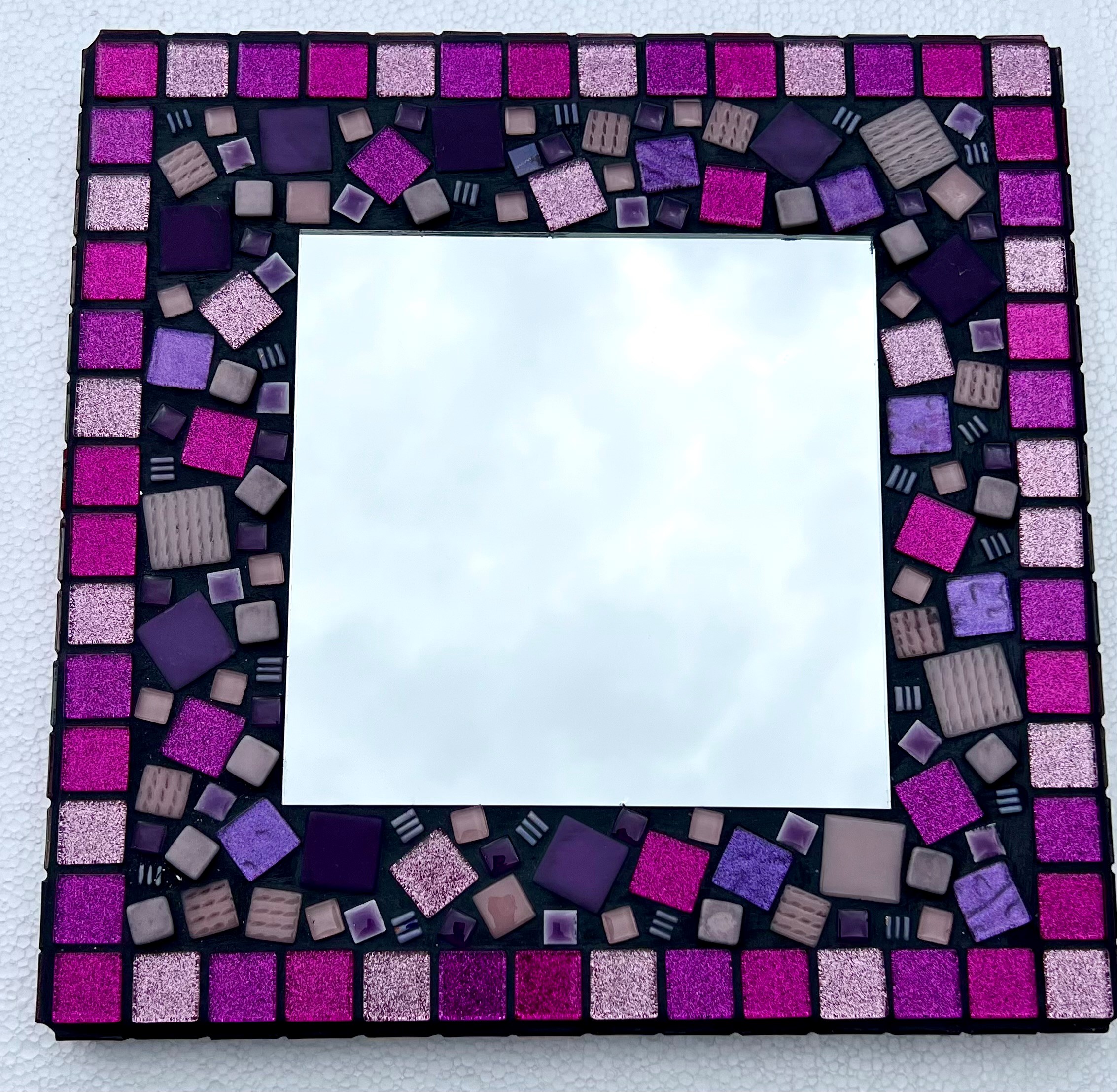 In this workshop you will create a mirrored 12 x 12” mosaic piece. We will provide all the materials that are needed including the beautiful glass from our Master Mosaic Art Glass & Tile line. You will have a wide variety of colors and styles of glass to choose from. At the end of the workshop we will grout your piece with black grout and attach a hanger to the back of your masterpiece so you can hang it proudly in your home.